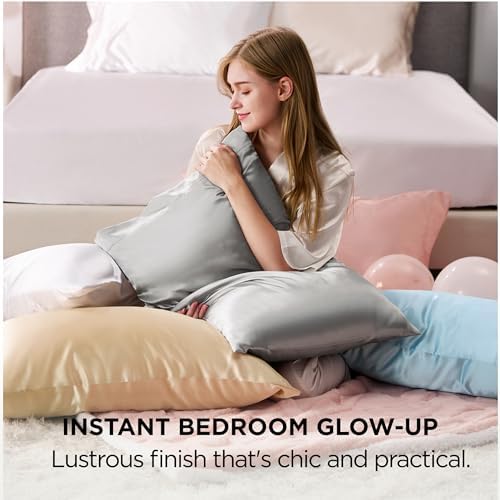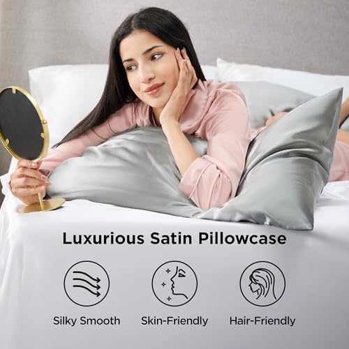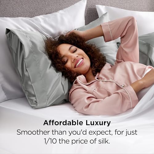 Bedsure Satin Pillowcase, Similar to Silk Pillow Cases Queen Size Set of 2, Cooling Pillow Case for Hot Sleepers with Envelope Closure, Gifts for Women Men, Silver Grey, 20×30 Inches, 2pcs : Home & Kitchen
