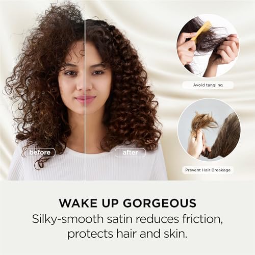 About this item Better Hair: Made of 100% polyester, these silk-like satin pillowcases feature a smooth texture that minimizes friction, helping reduce hair breakage and control frizz. Perfect for curly, wavy, or delicate hair types Better Skin: The buttery smooth surface of this pillowcase set reduces the chance of skin marks and wrinkles after a cozy night’s sleep, providing you with a fabulous look even in the morning Better Sleep: The silk-like fabric on this pillowcase set provides long-lasting durability against wear and tear. An envelope closure design ensures the pillow insert stays in place without sliding Vegan Friendly: Unlike silk, no silkworms are employed in the making of this elegantly smooth pillowcase, making it an excellent choice for those with a vegan lifestyle Vibrant Gift Option: This vibrant pillowcase set is available in dozens of color options, so you can always find the one that perfectly matches the mood and vibe for you or your recipients What You Can Get: Indulge in a blissful night’s rest with our set of two queen satin pillowcases (20″ x 30″)