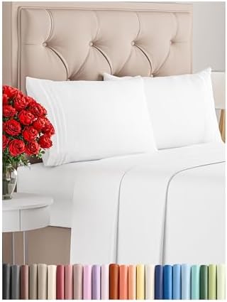 Queen Size 4 Piece Sheet Set – Comfy Breathable & Cooling Bed Sheets Set – Hotel Luxury Bedding for Women, Men, Kids & Teens – Deep Pockets, Easy Secure Fit, Soft and Wrinkle Free – Oeko-Tex – White : Home & Kitchen